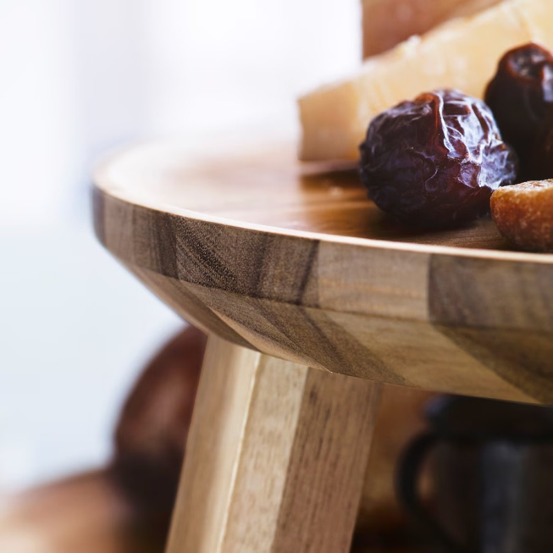 این محصول دارای شکل بسیار ساده در عین حال زیبایی است که اون رو به یک مرکز زیبا در چیدمان میز تبدیل می کنه ،این ظرف پذیرایی چوبی از قبل با روغن موم سخت پوشیده شده و تا زمانی که سطح شروع به سایش کند، نیازی به روغن کاری مجدد نیست. این استند پذیرایی چوبی از چوب اقاقیا جامد تولید شده که از مقاومت بسیار بالایی برخوردار هست . برای شست و شوی این محصول میتوان از یک اسفنج مرطوب شده در آب یا محلول صابونی ملایم استفاده کنید و هر از چند گاهی باید با روغن مورد تایید غذا آن را دوباره براق نمایید.