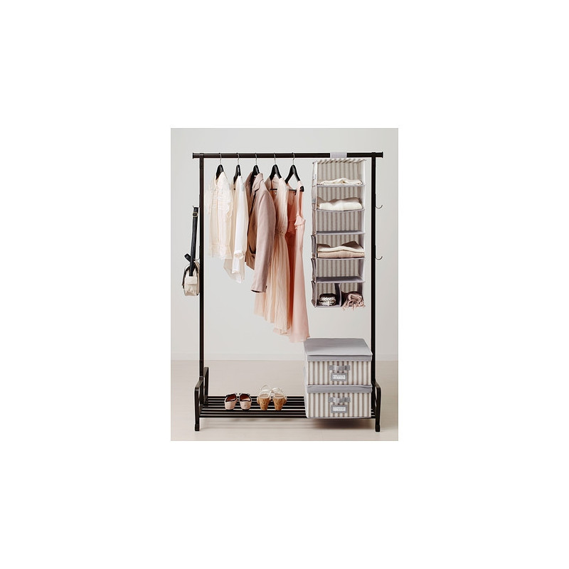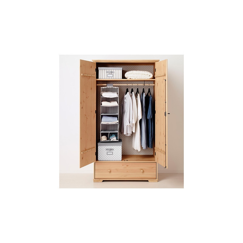 نظم بخشیدن به لباسها و لوازم شخصی درون کمد و نگهداری آن کار نسبتا سادهای نیست، بخصوص برای افراد شاغل و یا مادرانی که فرزندان کوچک دارند. برند ایکیا برای حل این مسئله و کمک به نظم بخشی بهتر به کمدهای لباس و حفظ آن، باکس آویز SVIRA را طراحی و ارائه کرده است. که به صورت خانهخانه روی یکدیگر قرار گرفته اند. جنس ای محصول از پلیاستر تهیه شدها است. دارای 6 طبقه ک در یک طبقه تقسیم کننده دارد که به دو قسمت تبدیل شده، در دو طرف آویز جیب هایی قرار گرفته برا قرار دادن لوازم کوچک، این محصول بسیار کاربردی بوده و برای سر و سامان بخشیدن به لوازم به شما کمک میکند.