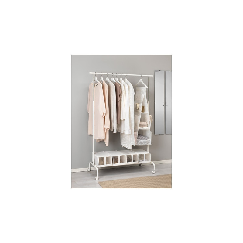 نظم دادن به لباسها و لوازم شخصی درون کمد و نگهداری آن کار نسبتا سادهای نیست، بخصوص برای افراد شاغل و یا مادرانی که فرزندان کوچک دارند. برند مدرن و خوشفکر ایکیا برای حل این مسئله و کمک به نظم بخشی بهتر به کمدهای لباس و حفظ آن، باکس آویز PLURING را طراحی و ارائه کرده است. که به صورت دو طرفه جیب قرار گرفته است. به ابعاد 30*30 سانتی متر و به ارتفاع 96 سانتی متر میباشد.