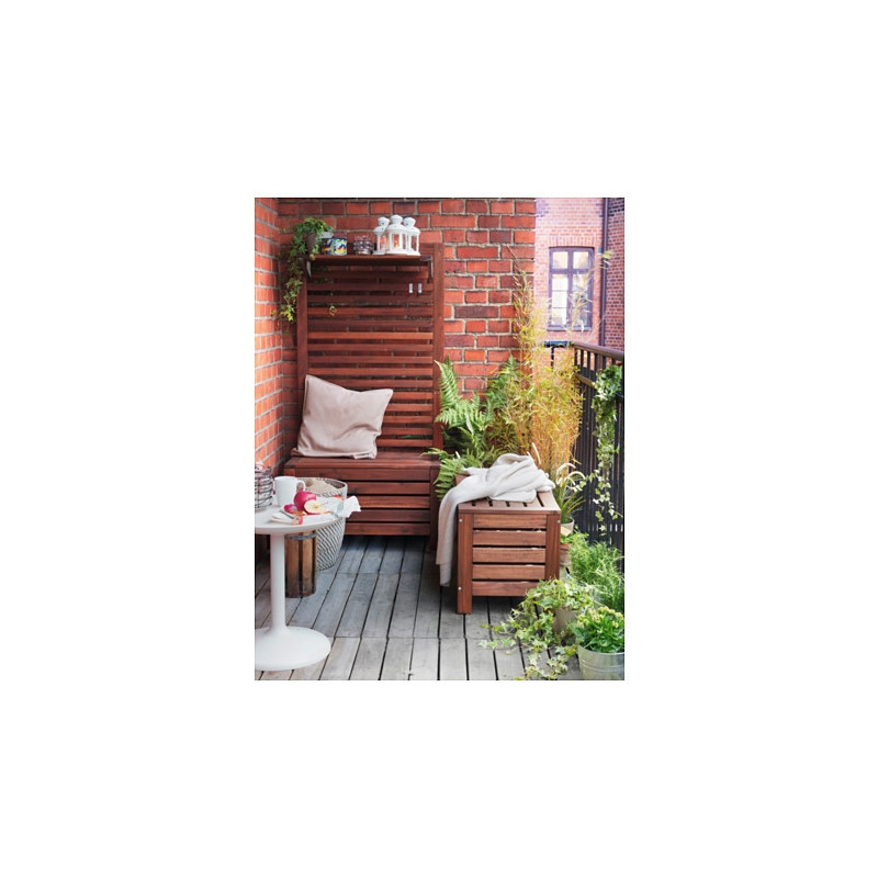 اگر براي فضای بالکن یا حیاط خود بهدنبال صندلي ساده و زيبا هستيد، نيمكت ایکیا مدل APPLARO گزينهاي مناسب براي شما محسوب ميشود. اين نيمكت دونفره از چوب اقاقیا ساخته شده است و كيفيت بسيار خوبي دارد. چوب اقاقیا مستحكم است و وزن افراد مختلف را بهخوبي تحمل ميكند. اين نوع چوب برخلاف برخي محصولات چوبي يا پلاستيكي كم كيفيت بعد از گذشت مدتزمان كوتاهي نميشكند و طول عمر بيشتري دارد. از ويژگيهاي برجسته این نیمکت فضای داخلی آن برای ذخیره سازی لوازم مورد نظر است. وزن بسيار كمي دارد و حمل آن از جايي به جاي ديگر بهسادگي انجام خواهد گرفت. با قرار دادن يك يا چند نيمكت چوبي ایکیا در خانه يكنواختي و خشكي چنين محيطهايي را از بين خواهد رفت. كاربرد وسايل چوبي در فضاي خانه يا رستوران تأثير بسزايي در روحيه فرد دارد.