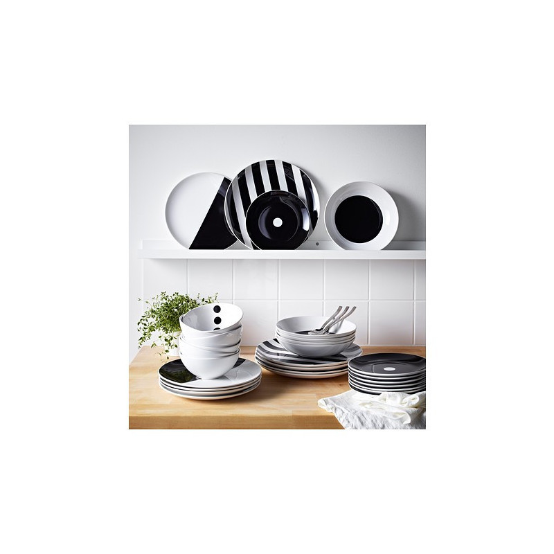 بشقاب غذاخوری سیاه و سفید TICKAR ایکیا دارای رنگهای مکمل میباشد که به هنگام مشاهده یکدیگر را طلب میکنند و در کنار هم ایجاد تحرک میکنند و یکدیگر را کامل میکنند. دو رنگ مکمل در کنار هم موجب درخشانی و جلوه یکدیگر میشوند. ترکیب رنگ زیبا و متناسب یکی از عواملی است که زیبایی خاصی به میز غذا و دکور منزل شما میبخشد. با انتخاب این محصول ایکیا همراه با ماگ سفید و مشکی شما جلوه زیبایی به میز غذا خوری خود میدهید و اعضای خانواده را در یک محیط زیبا در کنار یکدیگر جمع میکنید.