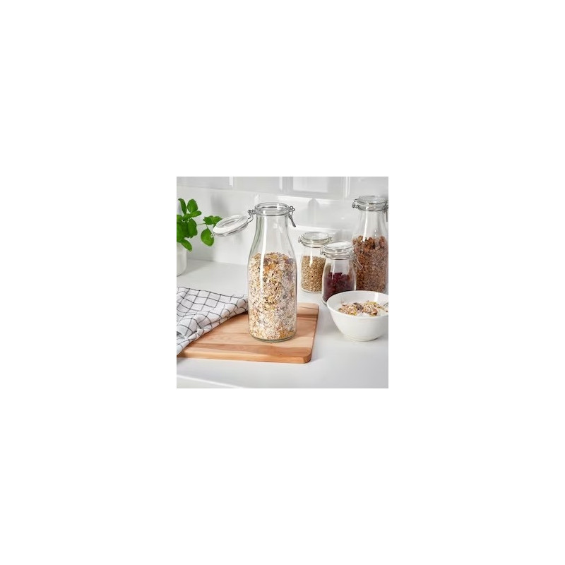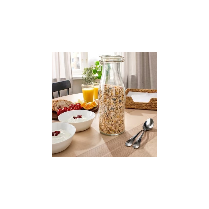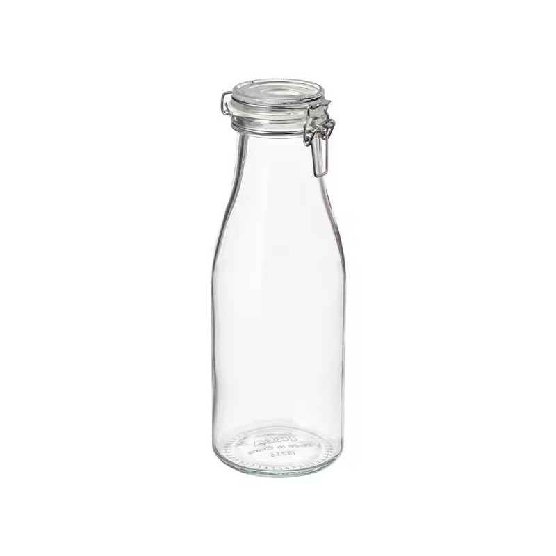 بطری شیشه ای ایکیا KORKEN مناسب برای نگهداری مواد غذایی مایع مانند شیر،ترشی، مربا و…