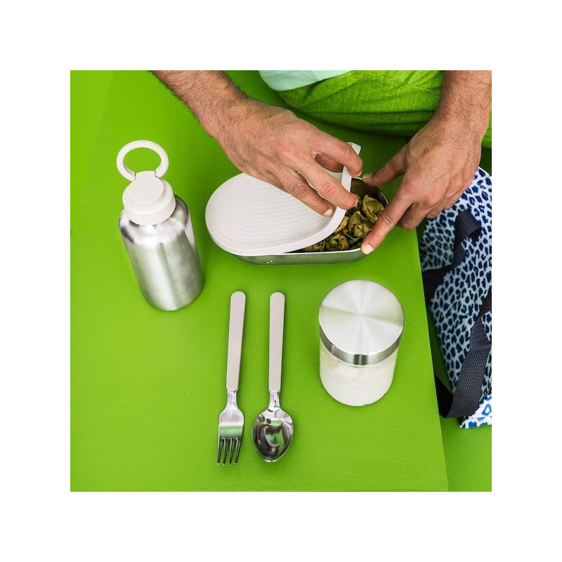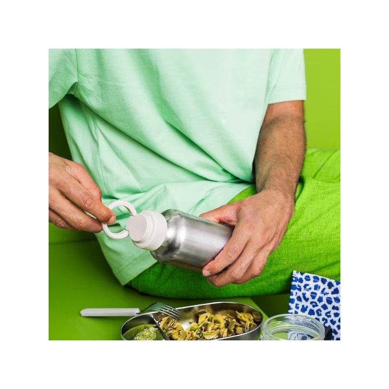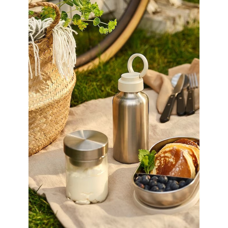 بطری فلزی ایکیا ENKELSPARIG به لطف طراحی باریک و دستگیره روی درب آن به بسیار راحتی قابل استفاده وحمل است.