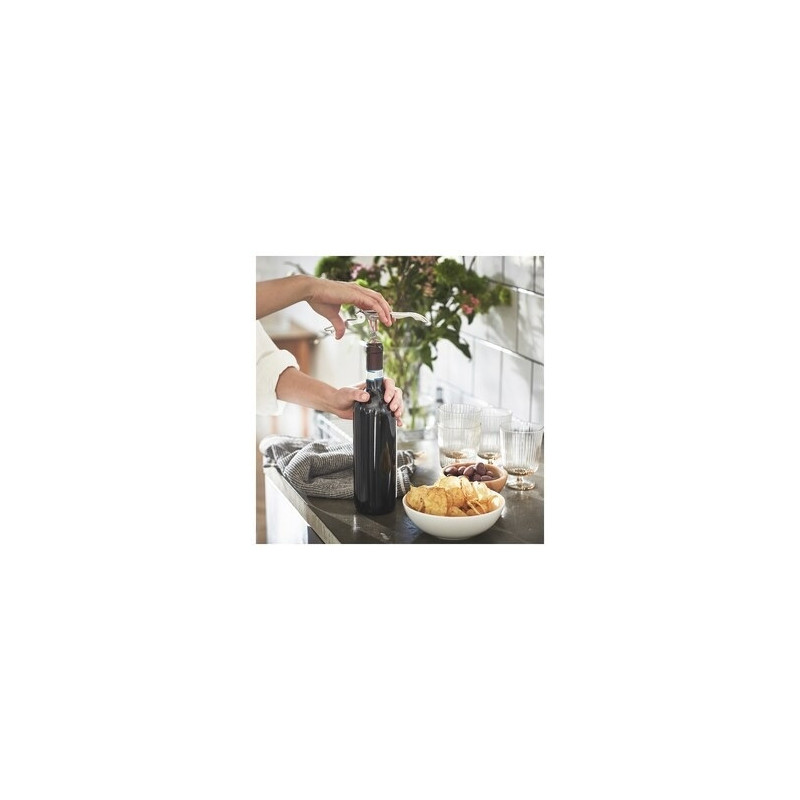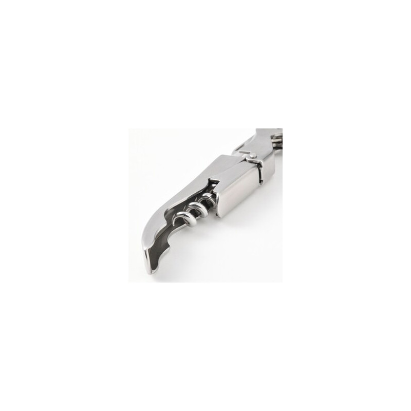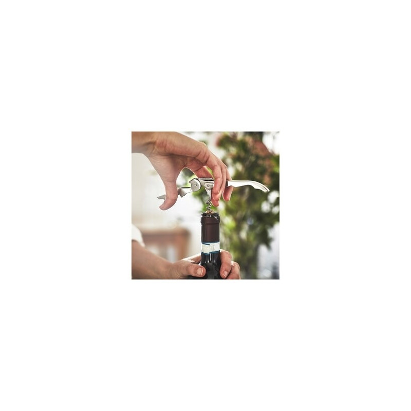 این درب بازکن با طراحی که دارد می تواند در دو مرحله ابتدا با چاقوی موجود فویل دور درب و سپس با پیچ درب چوب پنبه ای را باز کنید.