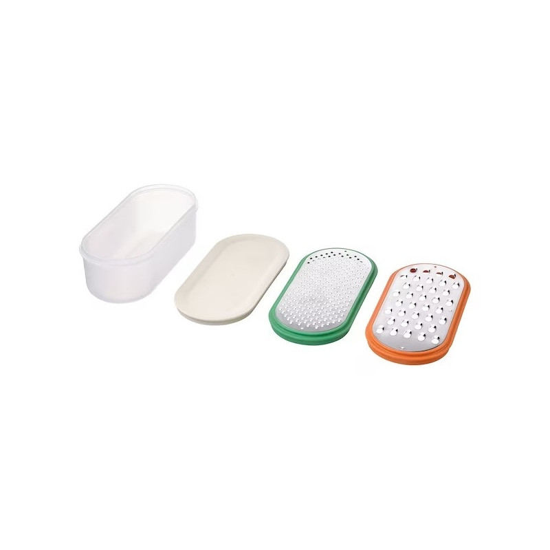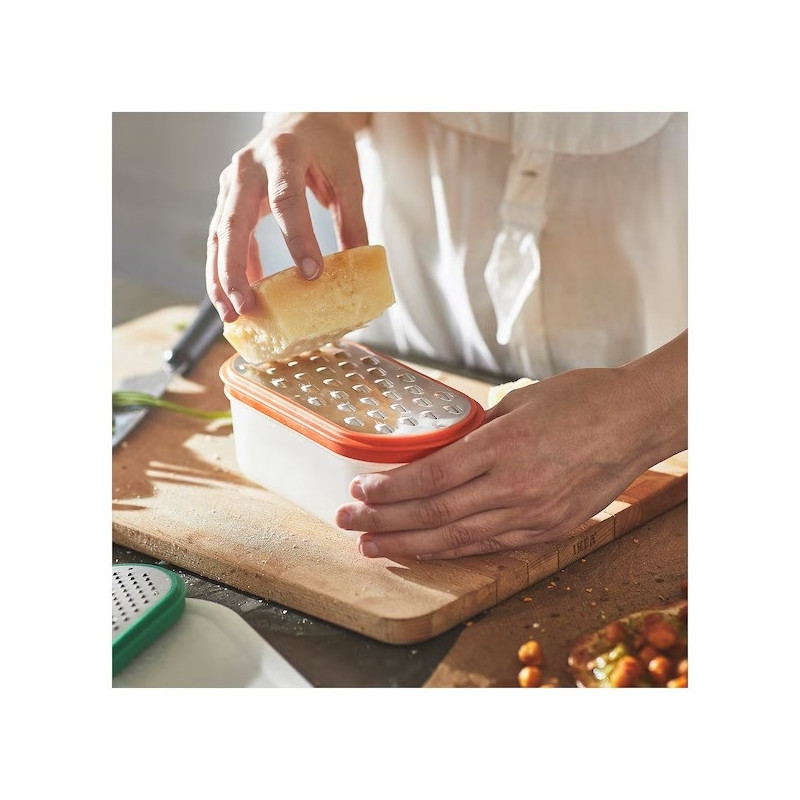 با رنده مخزن دار میتوانید میوه ها و سبزیجات خود را مستقیماً در ظرف رنده کنید و درمخزن رنده نگهداری کنید. به دلیل دارا بودن درب محفظه مواد غذایی کاملا تازه میماند. رنده در 2 اندازه موجود است و می توانید کل محصول را در ماشین ظرفشویی بشویید.