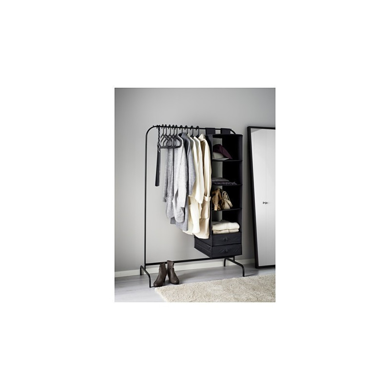 اگر لباس‌هایتان به‌قدری زیاد است که نمی‌توانید همه‌ی آنها را در رگال آویزان کنید حداقل می‌توانید لباس‌هایی را که می‌خواهید در طول 1 هفته بپوشید را در رگال آویزان کنید. رگال‌های لباس ما را مجبور می‌کنند تا لباس را به صورت منظم و با استفاده از رک لباس در جای خود قرار دهیم، این باعث می‌شود تا لباس‌هایمان چروک نشوند و به عمر مفید آنها افزوده شود، قرار دادن لباس‌ها در کمد یا درآور روش مناسبی نیست چون باید دسته‌بندی‌ها بر اسا نوع لباس صورت پذیرد، رگال مشکی ایکیا  MULIG بسیار کم حجم است و مناسبترین گزینه برای آپارتمان‌های کوچک است.