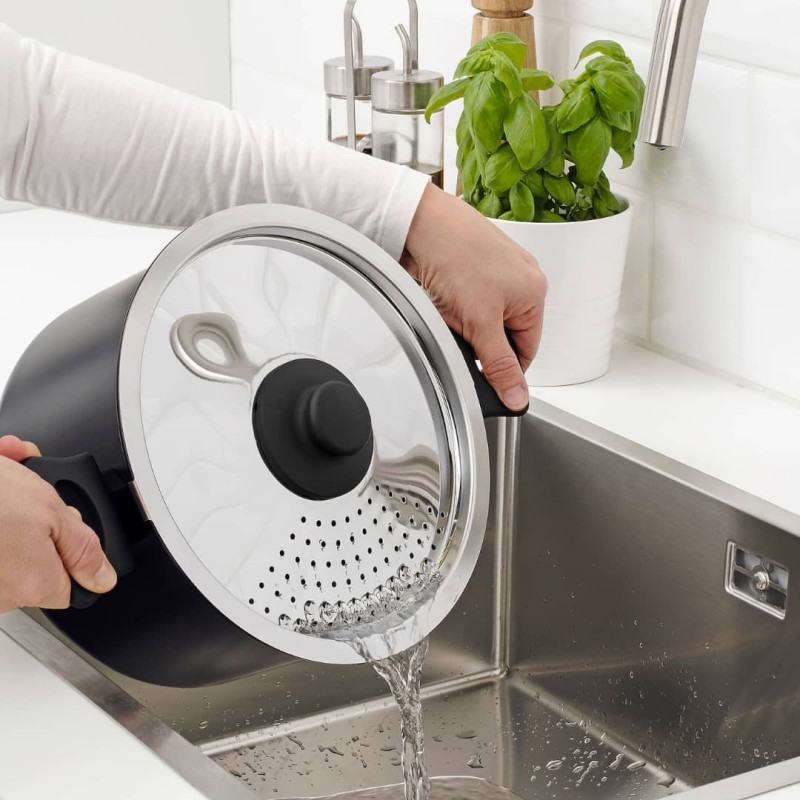 پخش حرارت یکنواخت و سریع .قابلمه 5 لیتری دارای درب مشبک جهت ابکش کردن و یا خارج کردن مایعات اضافی