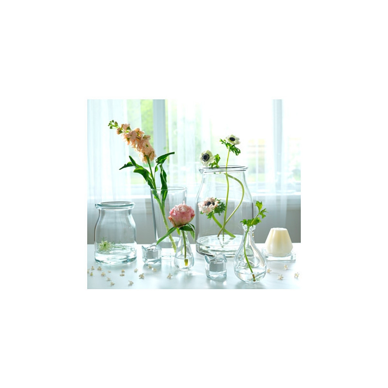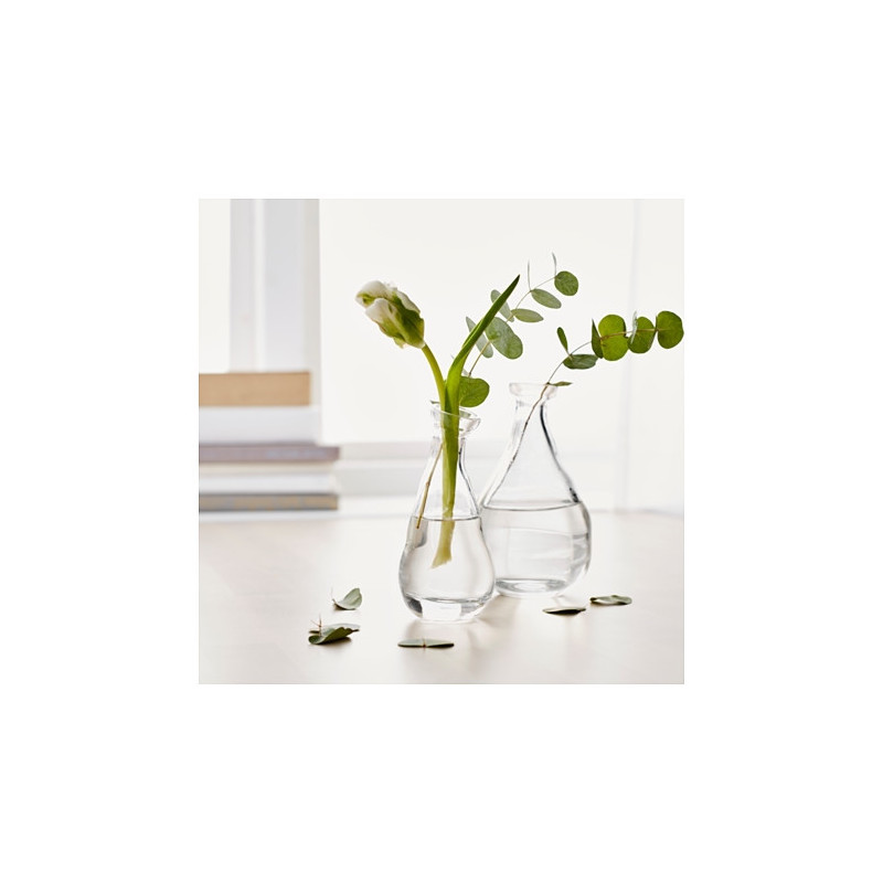 امروزه در طراحی این قبیل لوازم دکوری ظرافت و خلاقیت خاصی لحاظ میشود. این ابزار دکوری میتواند یک گلدان برای نگهداری از گلهای تازهی زیبا باشد که فضای خانه را با طراوت کند. این دو گلدان با طراحی خاصشان هرجایی از خانه قرار بگیرند جلب توجه خواهند کرد. . دو گلدان ایکیا مدل (VARVIND) جنسی از شیشه دارند. شیشه از عناصری شفاف و منظم به دست میآید و پس از حرارت دیدن به مادهای مذاب تبدیل میشود. بهتر است این دو گلدان را با دست بشورید زیرا ظرافت زیادی دارند. گلدان بزرگتر ابعادی معادل 14.5× 8.5 سانتیمتر و دیگری 13 سانتیمتر است. دهانهی گلدانها برای چند شاخه بسیار مناسب خواهند بود و البته در کنار هم زیباتر به نظر میآیند.