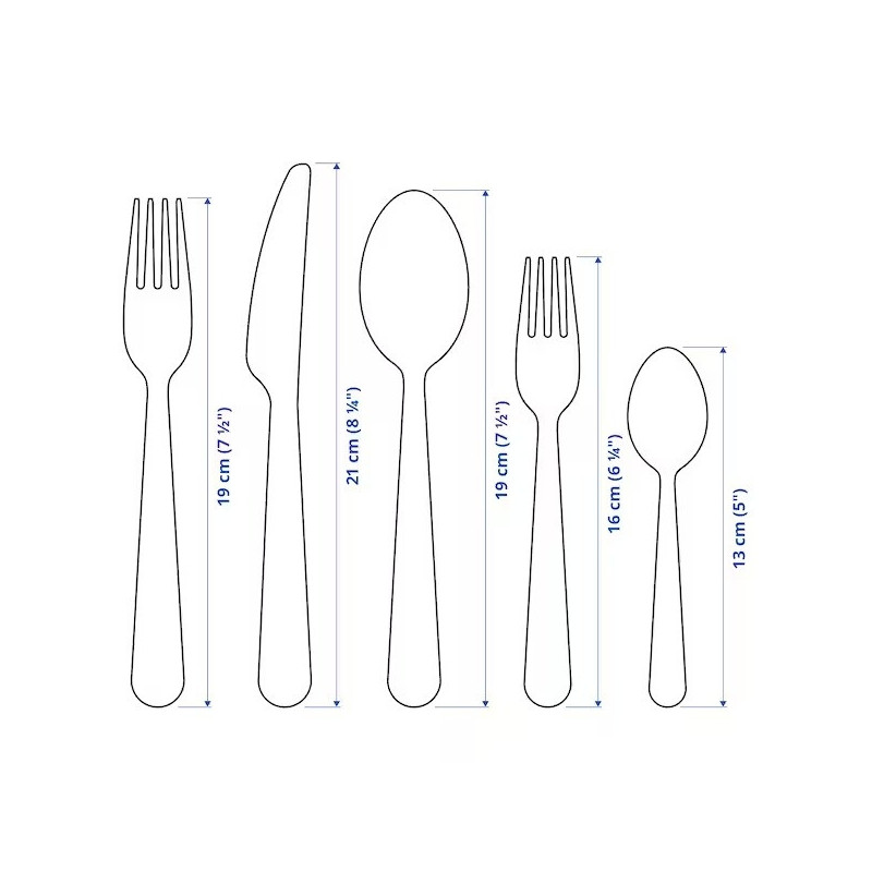 اگر برای سرو غذا و پذیرایی از مهمانان به دنبال تهیه یک سرویس قاشق و چنگال با کیفیت خوب هستید که درعینحال طراحی زیبایی داشته باشد، سرویس قاشق و چنگال 60 پارچه ایکیا مدل DRAGON بهترین انتخاب است. این سرویس با اقلام کافی خود، تمام نیازهایتان را برای برگزاری یک مهمانی عالی یا یک دورهمی خانوادگی، برطرف میکند. این ست شامل 12 قاشق غذاخوری، 12 چنگال غذاخوری، 12 قاشق چای خوری، 12چنگال میوهخوری و 12 چاقو بوده و برای دوازده نفر مناسب است. با وجود چنین سرویس تکمیلی دیگر به هیچ قاشق و چنگال اضافهای نیاز پیدا نخواهید کرد. اگر بخواهید بعد از مهمانی یا صرف غذا با خانواده، از ماشین ظرفشویی استفاده کنید، میتوانید بدون نگرانی این سرویس را نیز با دیگر ظروف داخل آن قرار دهید.
