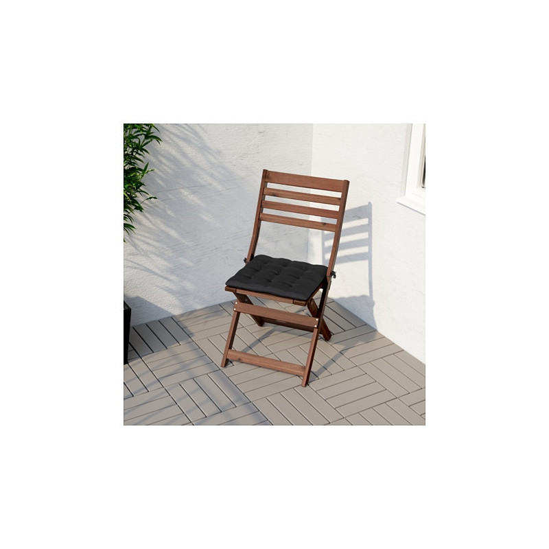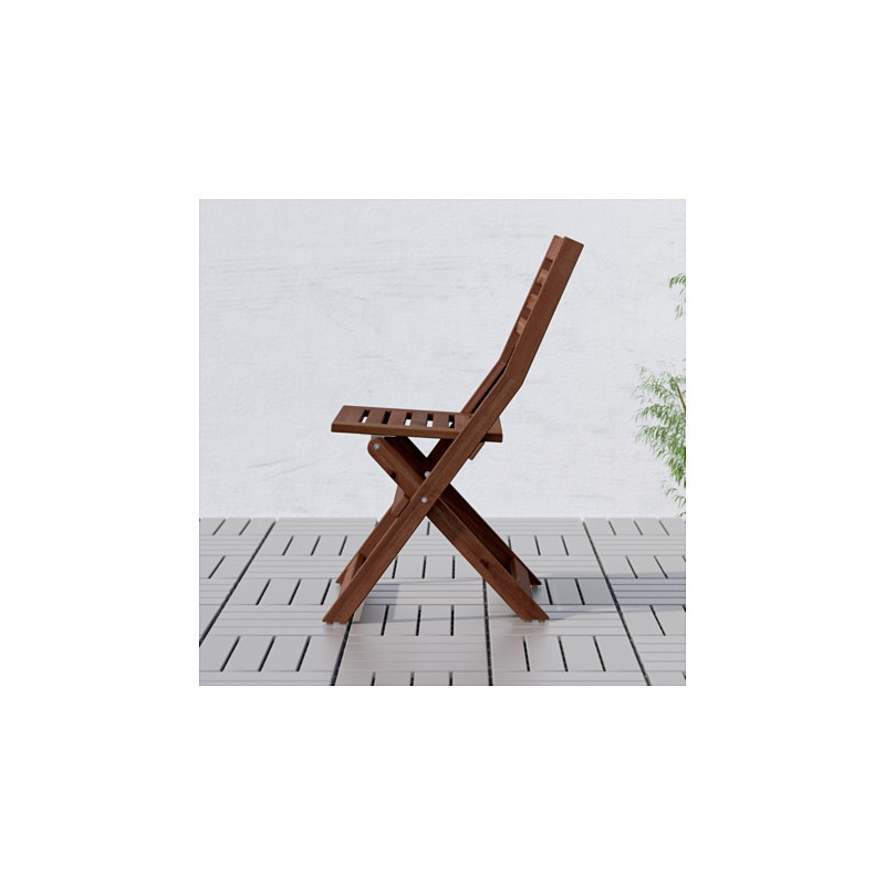 صندلی ایکیا مدل APPLARO مناسب برای فضاهای کوچک است. جنس این صندلی از چوب اقاقیا است که در برابر باران و نور خورشید مقاومت خوبی دارد. با توجه به تنوع در جنس مبلمان در فضای باز یکی از مهمترین نکات در خرید شان میزان تمایل شما به هزینه کردن برای خرید می باشد. اما آنچه مسلم است میز و صندلی چوبی در فضای باز علاوه بر زیبایی باید دارای مقاومت و استحکام کافی در برابر نور خورشید و تغییرات آب و هوایی داشته باشد