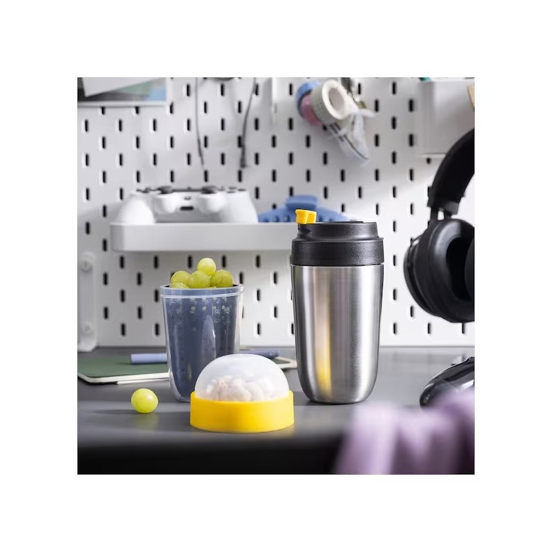 ظرف اسنک و تنقلات ایکیا SPLITTERNY دارای یک محفظه برای اجیل و سایر محصولات خشک و یک فیلترکه میتوانید میوه ها را بشویید و درآن نگهدارید.