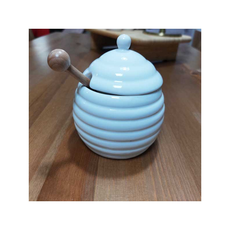 ظرف عسل سرامیکی HOME CENTER با طرحی شیک همراه باقاشق چوبی یک گزینه منحصر به فرد برای سرو عسل محسوب می شود.