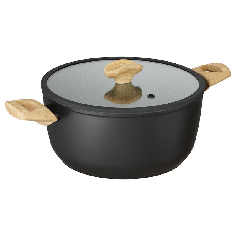 قابلمه مشکی ایکیا سری HUSKNUT روی همه انواع اجاق گاز از جمله اجاق گاز القایی به خوبی کار می کند.