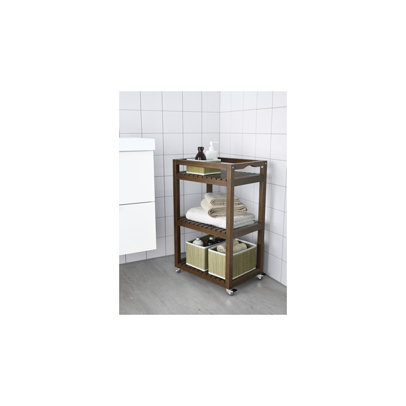 عدم وجود نظم و بهمریختگی لوازم در حمام یکی از بزرگترین دغدغههای هر بانوی خانه است. زیرا مرتب کردن آن ممکن است زمان زیادی بخواهد. برای کنترل نظم در حمامها داشتن یک قفسه برای نگهداری لوازم یک امر ضروری است. باید تمام شامپوها، صابونها، لیفها و سایر لوازم در یک قفسه نگهداشته شوند تا از بهمریختگی جلوگیری شود. بهتر است که این قفسه از چند طبقه تشکیل شده باشد. پیشنهاد ما به شما قفسه حمام ایکیا مدل MOLGER دارای 3 طبقه است. این قفسهی حمام از چوب بوده و نیازی به نصب ندارد. این قفسهی حمام دارای ابعاد 47 × 33 × 76 سانتیمتر بوده و مناسب برای انواع لوازم شستوشو است. به راحتی میتوانید این قفسه را گوشه ای از حمام یا سرویس خود قرار دهید و دیگر نگران بهمریختگی محیط حمام نباشید و به دلیل چرخی که طراحی شده به راحتی قابل جبه جایی است. این قفسه در عین سادگی طراحی زیبایی داشته و با اشغال کمترین فضا بهترین وسیله برای حمام است. راز موفقیت این برند اهمیت به کیفیت و زیبایی محصولاتش است که با وجود طراحان حرفهای میسر شده است.