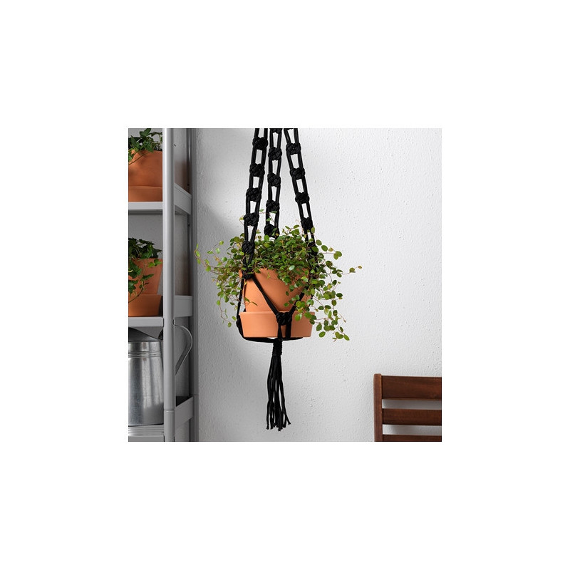 میتوان با نصب آویز و پرورش گلهای آویزی در گوشه و کنار خانه به استقبال هوای سالم و زیبایی طبیعت برویم. قلاب آویز گلدان مشکی ایکیا مدل SOMMAR را می توانیم هر جایی که مناسب باشد داخل ساختمان و یا در حیاط، و در منزل نصب کرد و گلدان ها را داخل آن قرار داد.