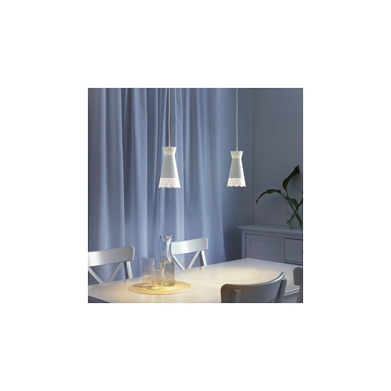 چراغ آویز ایکیا مدل MOLNDAL تک شاخه از چراغهای تزئینی تولیدشده توسط شرکت ایکیا است. این چراغ آویز با طراحی ساده و مدل استوانه ای شکل حبابش بسیار شکیل است. قاب استیل این آویز با سیم به سقف متصل می شود. ترکیب فلز و لبه های توری در این مدل آویز، آن را منحصر بفرد نموده است. با توجه به حباب استوانه ای و باریک این آویز نور بصورت متمرکز تابانده می شود و می توان آن را بالای میز آشپزخانه یا بالای کانتر نصب نمود.لازم به ذکر است، ایکیا نامی آشنا در صنعت روشنایی است.