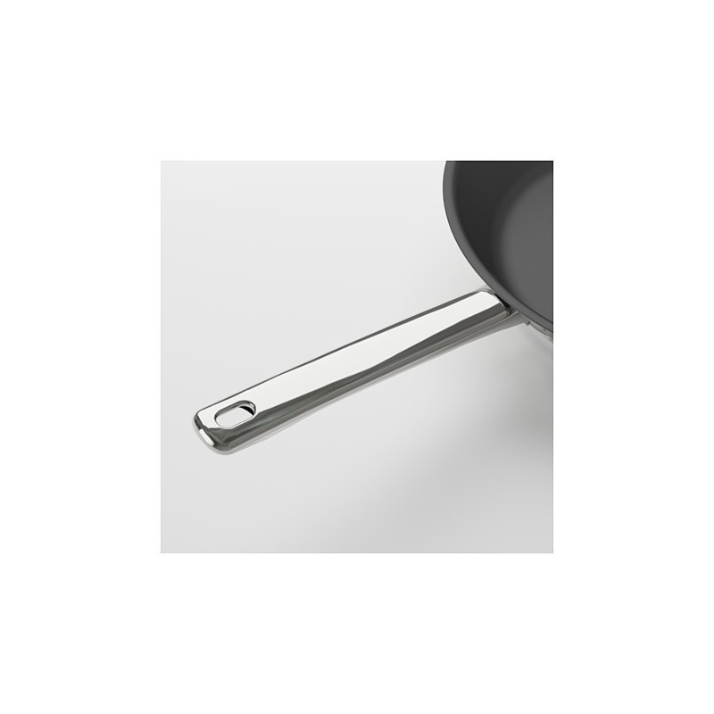 مزیت تابههای تکدسته نسبت به دودسته در آشپزی حرفهای است. با وجود یک دستهی بلند شما قادر هستید تمام محتویات ظرف را با حالت چرخشی بهصورت یکنواخت تکان داده و سرخ کنید. تابه ایکیا مدل Oumbarlig با داشتن یک دسته، تجربه لذت آشپزی حرفهای را برای شما بههمراه خواهد داشت. این تابه دارای ارتفاع 5 سانتیمتر بوده و مواد غذایی بهآسانی از آن بیرون نخواهد ریخت. ظروف استیل بهدلیل نداشتن روکش هیچگونه مواد مضر و اضافی به غذای شما وارد نمیکند. این محصول دارای کفی سهلایه بوده که از سوختن و چسبندگی غذا جلوگیری میکند.یکی دیگر مزیت های این محصول پخش عالی حرارت باعث میشود که روند پخت یکنواخت صورت پذیرد. برای شستن تابه استیل هیچ نگرانی به خود راه ندهید. فقط کافیست برای مدت کوتاهی مقداری آب گرم در آن ریخته تا کاملا تمیز شود.
