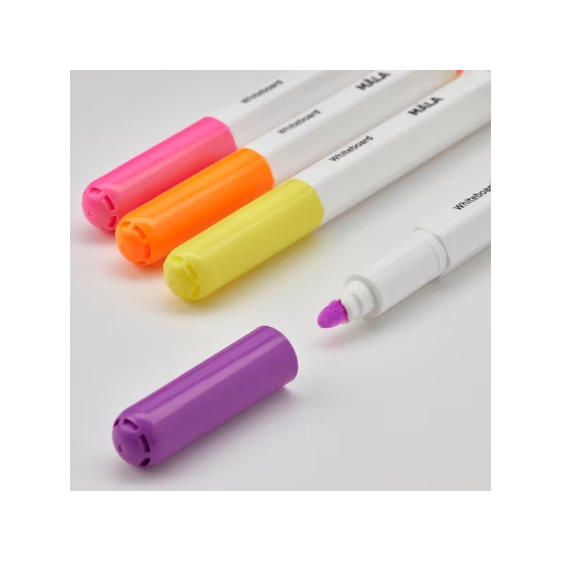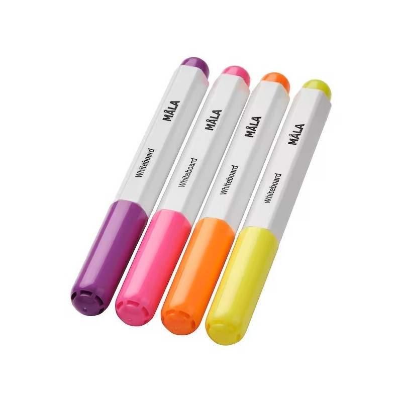 ماژیک های وایت برد ایکیا MALA دارای رنگ های زیبا و تقریبا درخشان هستند که راحت در دست قرار می گیرند و به آسانی پاک می شوند.