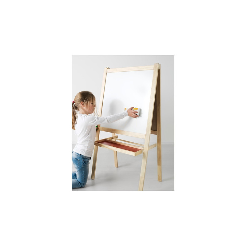ماژيک وايت برد 4 رنگ ايکيا مدل MALA ابزاری است برای اینکه کودکتان بتواند از نقاشی روی تختهوایتبرد لذت بیشتری ببرد. البته که با همین ماژیکها کودک میتواند درسهایش را هم مرور کند و بیشتر به ذهنش بسپارد. ماژیکهای «MALA» دست کودک را خسته نمیکنند و به پوست ظریفش آسیبی نمیرسانند. کافی است به کودکتان اجازه دهید که این بار املایش را روی تختهوایتبرد و با استفاده از رنگهای زیبای ماژيک وايت برد 4 رنگ ايکيا مدل MALA بنویسد. مطمئن باشید که با این روش کلمهها را بهتر یاد میگیرد. رنگهای قرمز، زرد، سبز و مشکی این ماژیکها همه زنده و شفاف هستند و میتوانند در خلق یک نقاشی خوشرنگولعاب به کودک کمک زیادی کنند. بدنهی هر چهار ماژیک مالا به شکلی طراحی شده است که بهراحتی در میان دستان ظریف کودک قرار میگیرد و انگشتانش را خسته نمیکند. جوهری که در مخزن ماژيک وايت برد 4 رنگ ايکيا قرارگرفته، غیرسمی است و برای سلامت کودک خطری ندارد. این جوهر از طریق نوکی گرد و روان به وایت برد منتقل میشود و تجربهی جدید و لذتبخش از نوشتن را برای کودک رقم میزند. ماژیکهای خوشدست مالا روی تختهپاککنی قرارگرفتهاند که بهراحتی اشتباهات کودک را پاک میکند. با چنین طراحی، ماژیکهای کودکتان همیشه در جایی مشخص کنار هم خواهند بود و گم نخواهند شد. با ماژيک وايت برد 4 رنگ ايکيا مدل MALA کودکتان بدون اینکه خسته شود، میتواند از نوشتن و نقاشی روی وایتبرد کوچک خود لذت ببرد. با این محصول برند ایکیا پدر و مادرها نگران آسیب رسیدن به پوست حساس کودک خود نخواهند بود و به بهترین شکل ممکن او را اسباب سرگرمی او را فراهم میکنند.