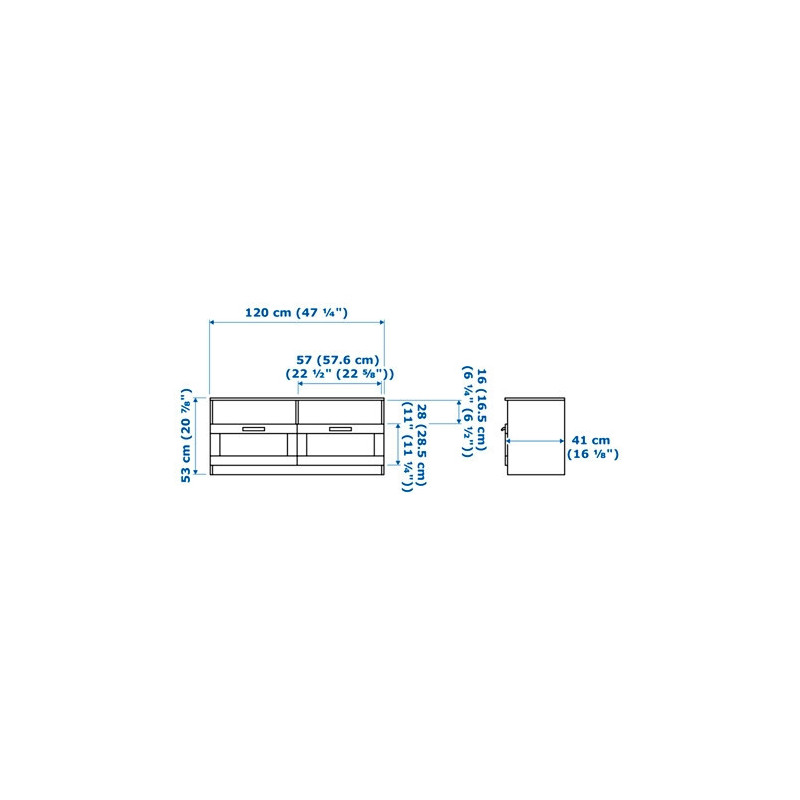 میزهای ال سی دی دارای ابعاد و اندازههای بزرگ و کوچکی هستند و باید متناسب با سالن منزل و فضای در اختیار کاربران انتخاب شوند. میز ایکیا مدل BRIMNES صفحهی 120 سانتیمتری خود از جمله میز های متوسط است که دارای دو بخش بالایی و پایینی است. بخش بالای میز محل قرارگیری تلویزیون است. در قسمت پایینی طبقاتی برای قرار دادن گیرندههای دیجیتال، یا پخشکنندههای صوتی و تصویری قرار دارد. ابعاد میز 53 × 41 × 120 سانتیمتر است این محصول دارای رنگ مشکی است. گفتنی است این میز تلویزیون بهصورت مونتاژ نشده و بستهبندی کارتنی برای خریدار ارسال میشود.