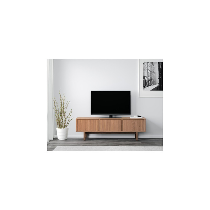 روزگاري تلويزيونها مبله بودند و نيازي به ميز تلويزيون احساس نميشد، اما امروزه ميز تلويزيون جزء اقلام ضروري دكوراسيون منزل به حساب ميآيد. اگر علاقه داريد ميز تلويزيون منزلتان متفاوت و چشمگير باشد، ميز تلويزيون ایکیا مدل STOCKHOLM را پيشنهاد ميكنيم. این ميز تلويزيون علاوه بر كاركرد دكوراتيو، بهواسطه فضاهاي پيشبيني شده جهت قرار گرفتن تجهيزات صوتي و تصويري بسيار كاربردي است. متريال استفاده شده در اين مدل لترون با کیفیت و روكش طبيعي چوب گردو مي باشد. ابعاد اين ميز 180 در 40 و ارتفاع آن 50 سانتي متر است، كه براي قرار دادن تلويزيونهاي با ابعاد بزرگ نيز مناسب است و تحمل وزن بسياري دارد. به واسطه متريال چوبي بر خلاف مدلهاي فلز و شيشهاي گرماي طبيعي چوب را به فضاي شما ميدهد و ميتواند با ديگر مبلمان چوبي منزل شما هارموني زيبايي داشته باشد.