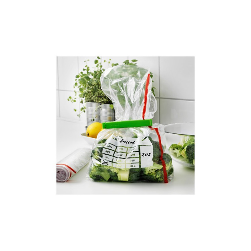 برای نگهداری میوه و سبزیجاتی که ممکن است زود خراب شوند یا بستهبندی انواع گوشت و ماهی، استفاده از کیسه فریزر مرسوم است، اما نیاز به گرهزدن کار را سخت کرده و بعد از یخزدن، بیرونآوردن محتویات از داخل کیسه را با مشکل روبهرو میکند. کیسهی پلاستیکی و زیپدار برند FORNY BAR ایکیا میتواند جایگزین مناسبی برای کیسه فریزرهای معمولی باشد. این کیسه از مواد پلیآمید و پلی اتیلن بهداشتی با تکنولوژی منحصربهفرد ساخته شده است. مزیت دیگر و اصلی این کیسههای زیپدار قابلیت ایجاد محیط ایزوله است که از ورود اکسیژن و بوی سایر موادغذایی به داخل کیسه و همینطور انتشار بوی مادهی داخل کیسه به بیرون جلوگیری میکند. با استفاده از این کیسه زیپ دار میتوان برای کمتر اشغالشدن فضای قفسههای فریزر، گوشت را به صورت کتابی فریز کرد و نیازی نیست که سر کیسه را گره بزنید؛ با این روش از به هم ریختن فرم گوشت جلوگیری میکنید. کیسه بستهی 40 عددی با حجم 3 لیتری عرضه شده است.