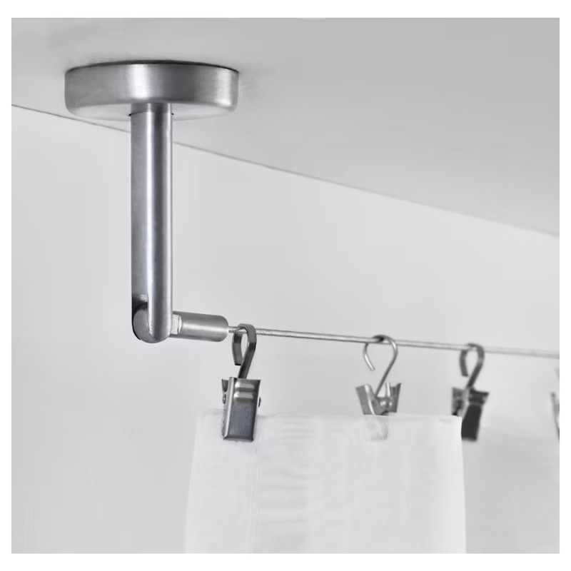 گیره و نخ پرده استیل 5متری ایکیا DIGNITET یک محصول مطمئین است که برای آویختن پرده ها، پارتیشن بندی و موارد این چنینی کاربردی و مناسب است. طراحی زیبای این محصول نمای زیبا و فوق العاده ای به محیط می دهد و می توانید آن را در فضاهای دلخواه تان استفاده نمایید. این محصول مقاومت بالای داشته و وزن تا 5 کیلو گرم را تحمل می کند.